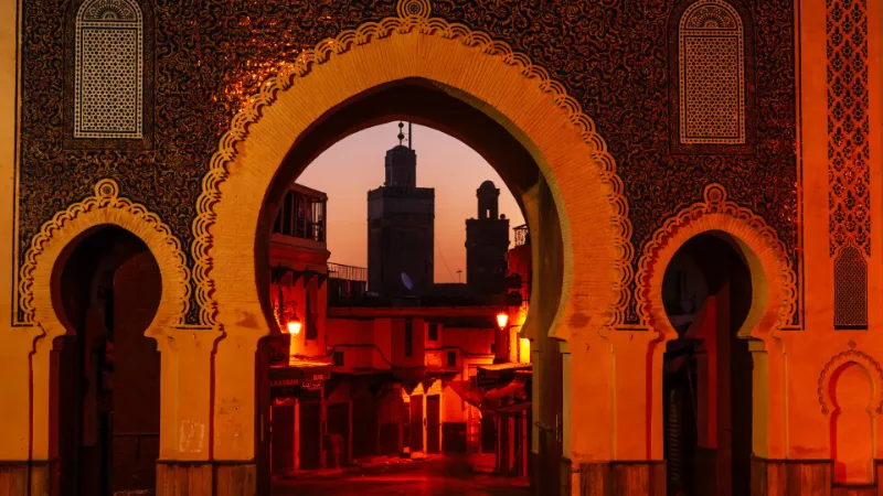 A short journey leads to Meknes, the 17th-century capital of Sultan Moulay Ismail. You will stand before the monumental Bab Mansour, widely considered the most beautiful gate in the Maghreb, before visiting the Royal Stables. The day culminates in Fes, the spiritual and intellectual capital of Morocco, where you will check into a luxury Riad deep within the ancient medieval walls.